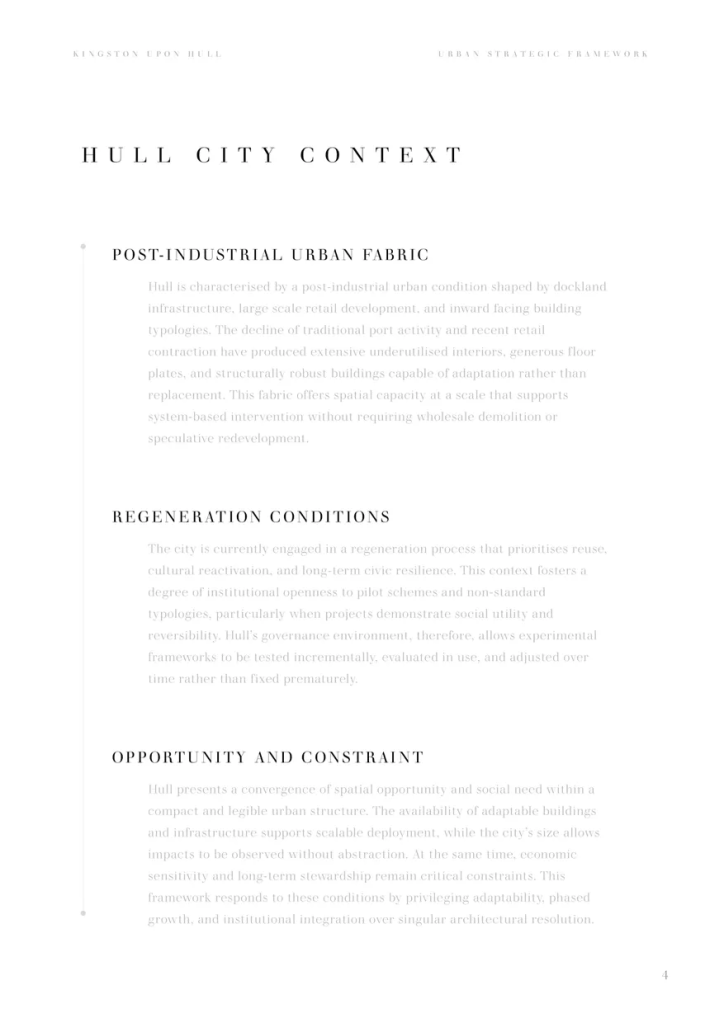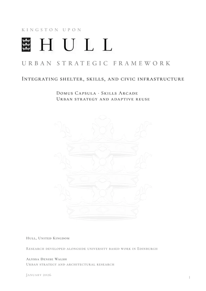 - To test the adaptability of the typology across contrasting urban contexts Through a dual case study of the San Francisco Centre and Princes Quay in Hull, the project evaluates how the Skills Arcade responds to differing economic conditions, cultural identities, and planning systems.