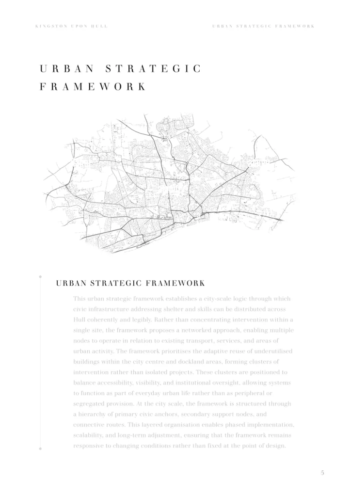 The project is developed as a typological study, tested through two contrasting case studies: the San Francisco Centre in the United States, representing a widely recognised dead mall condition, and Princes Quay in Hull, United Kingdom, representing a more typical British context of retail obsolescence without abandonment. Together, these sites demonstrate the transferability of the Skills Arcade model across cultural, economic, and planning systems.