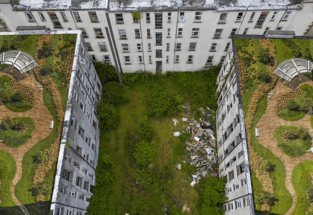 Taken together, the site’s location, history, and current condition position Clune Park as a critical case study within contemporary Scottish regeneration discourse. The estate embodies the intersecting challenges of post-industrial decline, housing vacancy, and heritage at risk, while also presenting a rare opportunity to reconsider how large-scale tenement estates might be reactivated through retention-led and socially engaged regeneration strategies.
